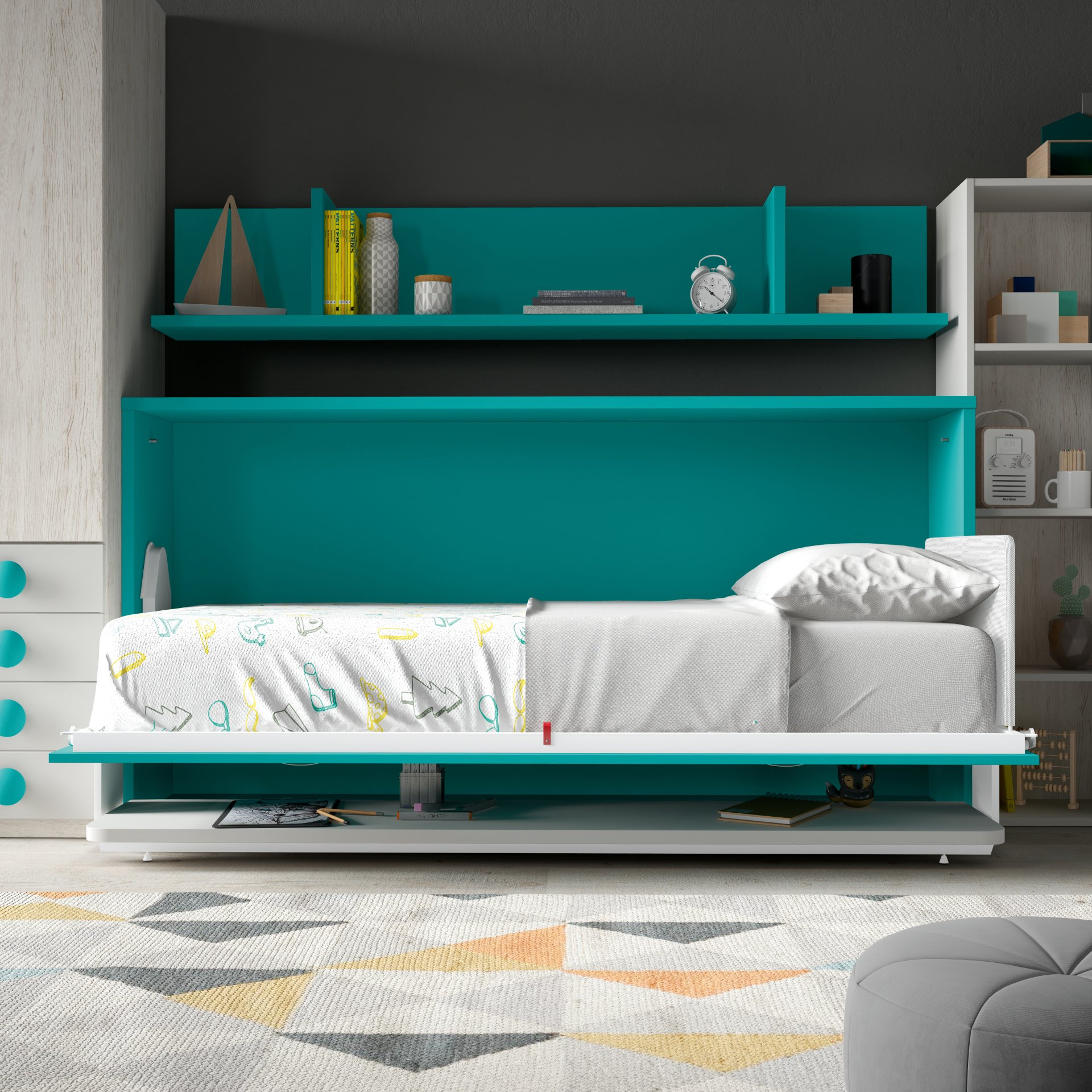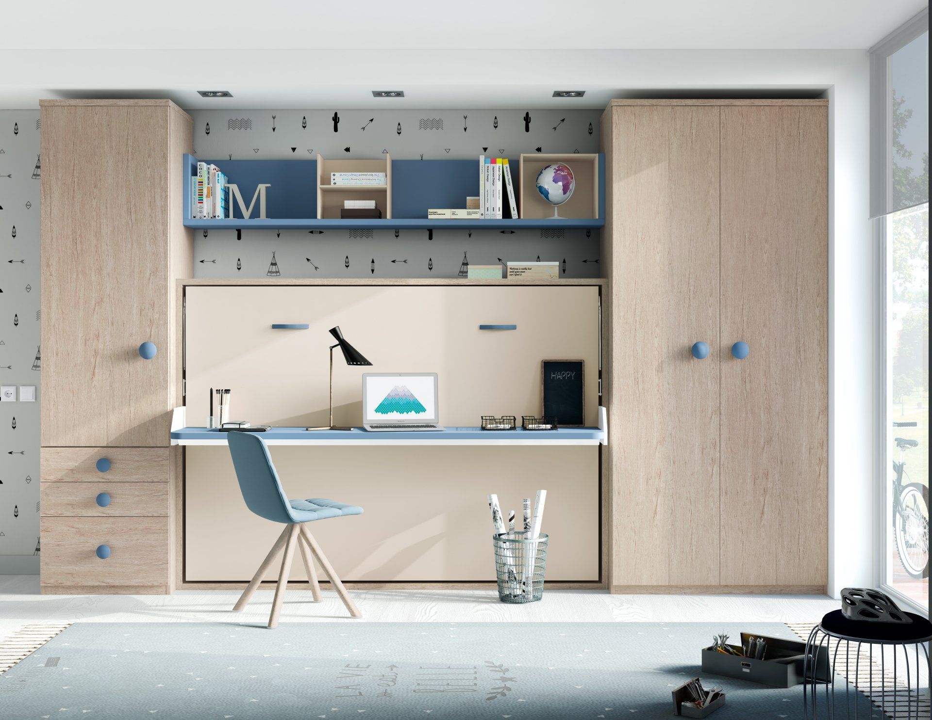 Armoire lit avec bureau couchage 90x190